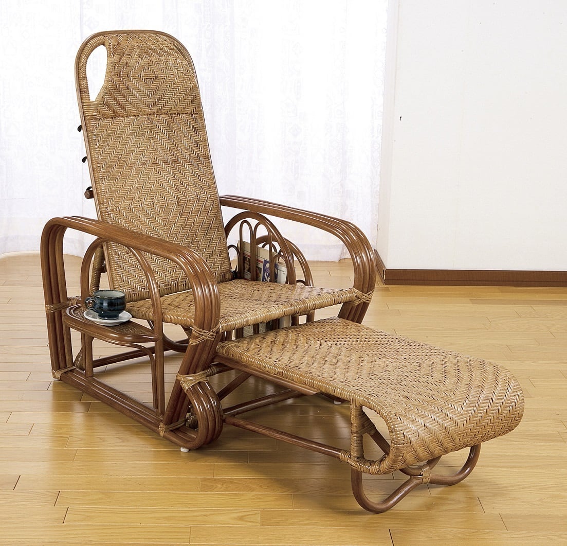 天然籐リクライニングチェア(マガジンラック・サイドテーブル付き)
