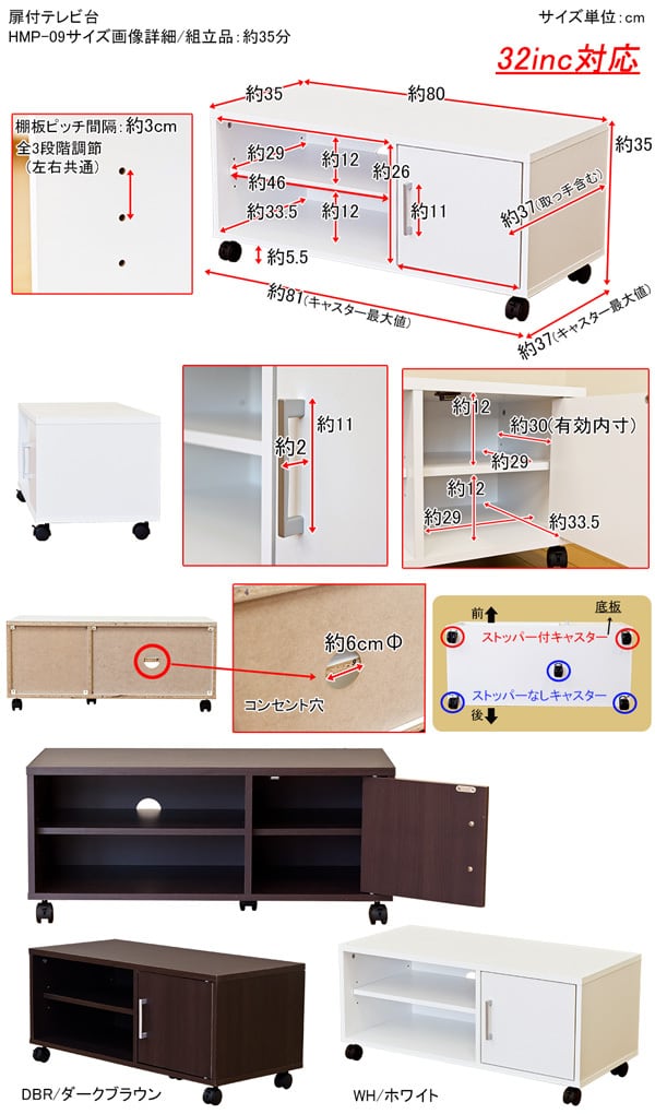 扉付き テレビ台 DBR/WH
