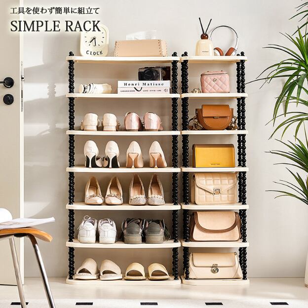 簡易ラック カバン収納 雑貨収納 靴ラック シェルフ ディスプレイ 玄関収納 シューズキャビネット 6 段/幅53CM